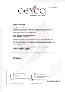 Abuja Wellness Beauty Beauty and Wellness Bella Naija EVERYDAY Geycci Spa Luxury Spa Ogey Emefiele ORGANIC OIL Relaxation Self-Care Spa Day